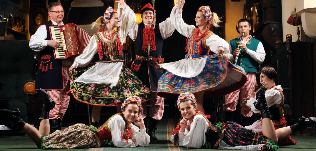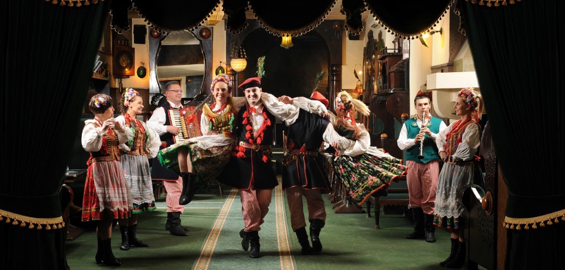 Discover the Polish folklore! Learn all about traditions and culture of various Polish regions. See the symbol of Krakow, Lajkonik, a man dressed in Mongol attire, with a wooden horse around his waist. You will have the opportunity to get to know famous Lajkonik and bugle call legends. Enjoy the traditional songs and folk dances. Relax and accept the invitation to dance with the band. During the performance, our guests are offered an opportunity to try the traditional Polish cuisine, which makes the whole experience one of a kind.