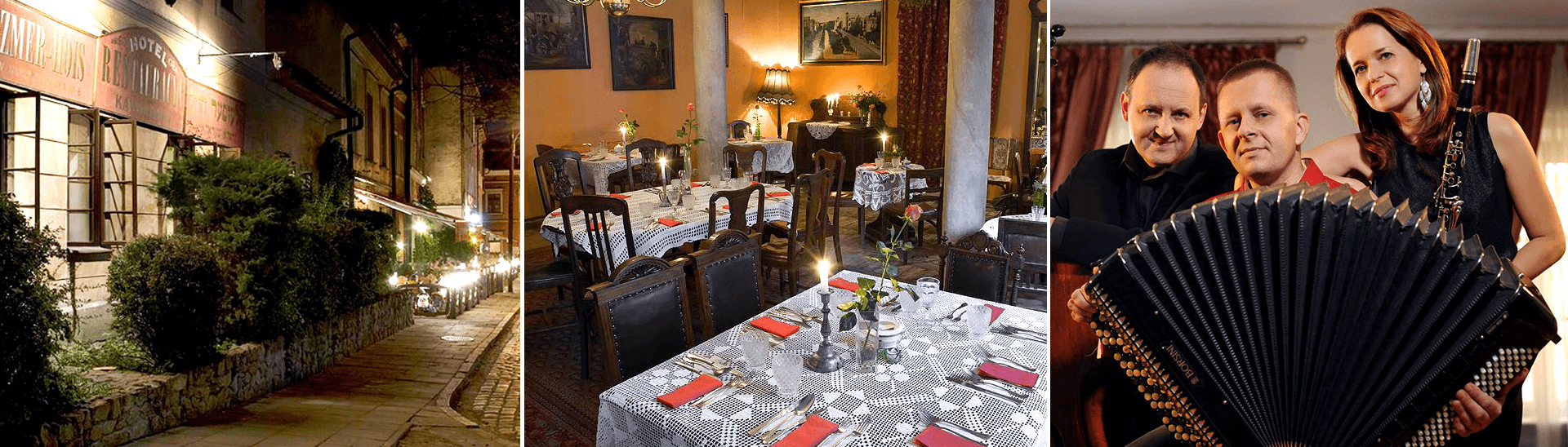 Give yourself an amazing opportunity to experience traditional Jewish dinner along with the Klezmer music concert at one of the best Restaurant located on the Jewish Quater of Krakow. Although there is no rabbinical supervision, restaurant obeys rules of kosherness which is extremely rare nowadays. The restaurant is a unique place that thanks to the décor, artistic atmosphere as well as culinary delicacies evokes the ambiance of the pre-war tradition of Jewish Kazimierz. In the restaurant can meet artists, musicians, actors, directors, painters, and poets from all over the world. Andrzej Wajda, Roman Polański, Steven Spielberg, Ben Kingslay, Ralph Finnes, Prince Charles, Ryszard Kapuściński, Czesław Miłosz were among guests of the Restaurant.